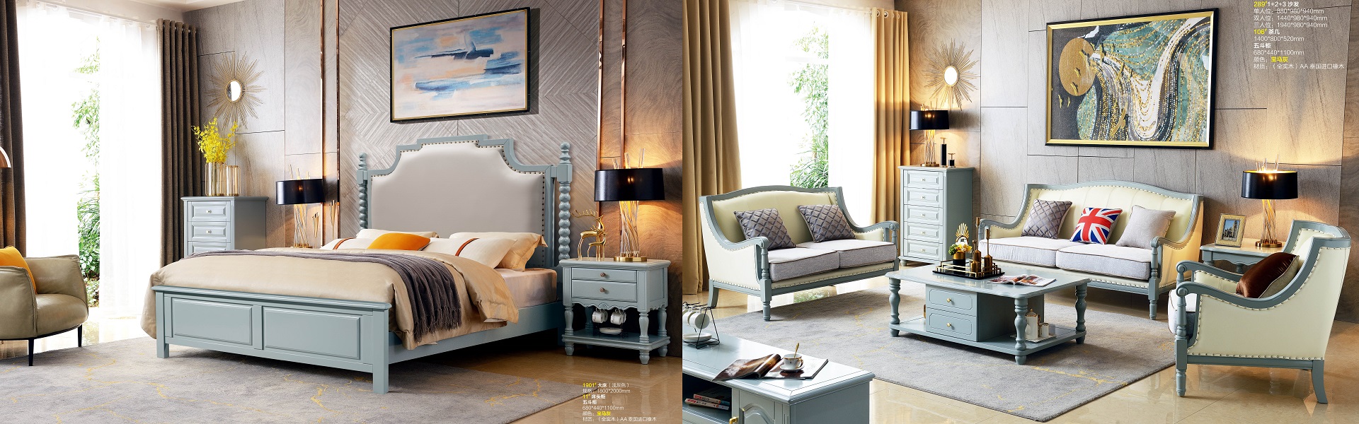 潤潼新美式家具1908#大床(藍(lán)色)