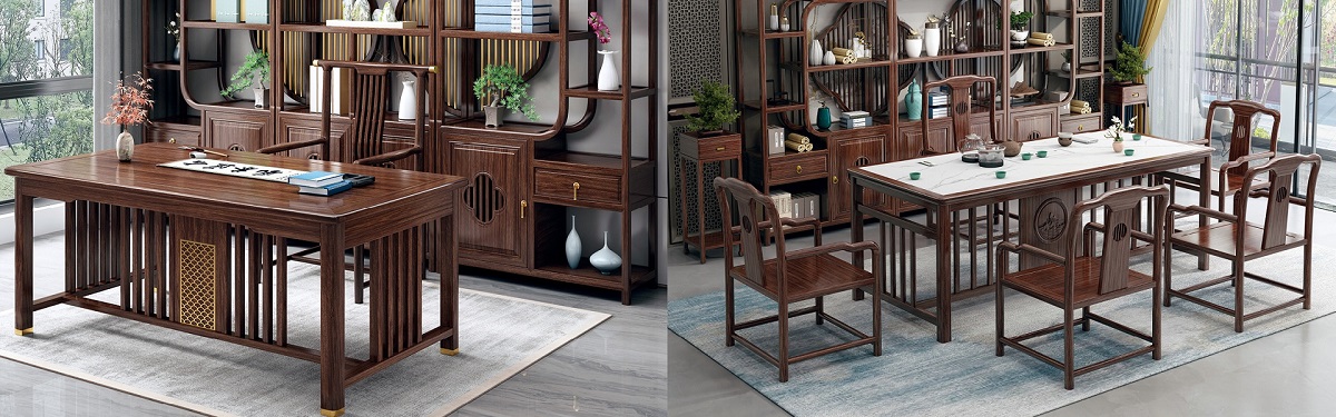 衛府里新中式烏金木SF609轉角沙發、KT608茶幾