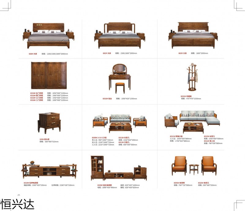 恒興達·詩韻·璽尚新中式系列家具產品: