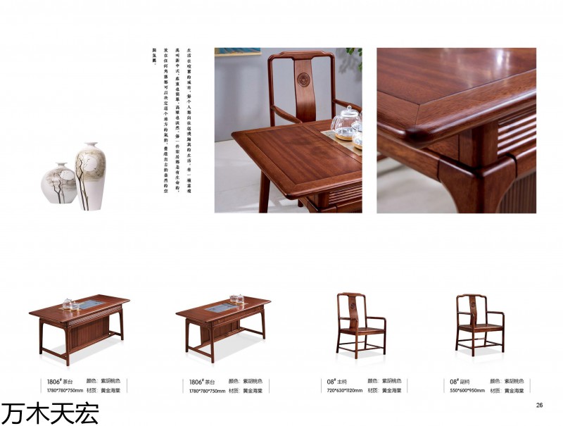 萬木天宏 黃金海棠木、沙比利 辦公·茶臺·客廳家具產品: