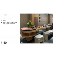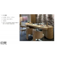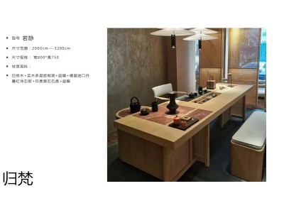 侘寂風茶空間家具,南康實木茶臺,白橡木茶桌,實木編藤茶臺,江西茶樓、茶室家具工程定制,歸梵茶臺家具品牌招商,宜享歸梵家具生產廠家