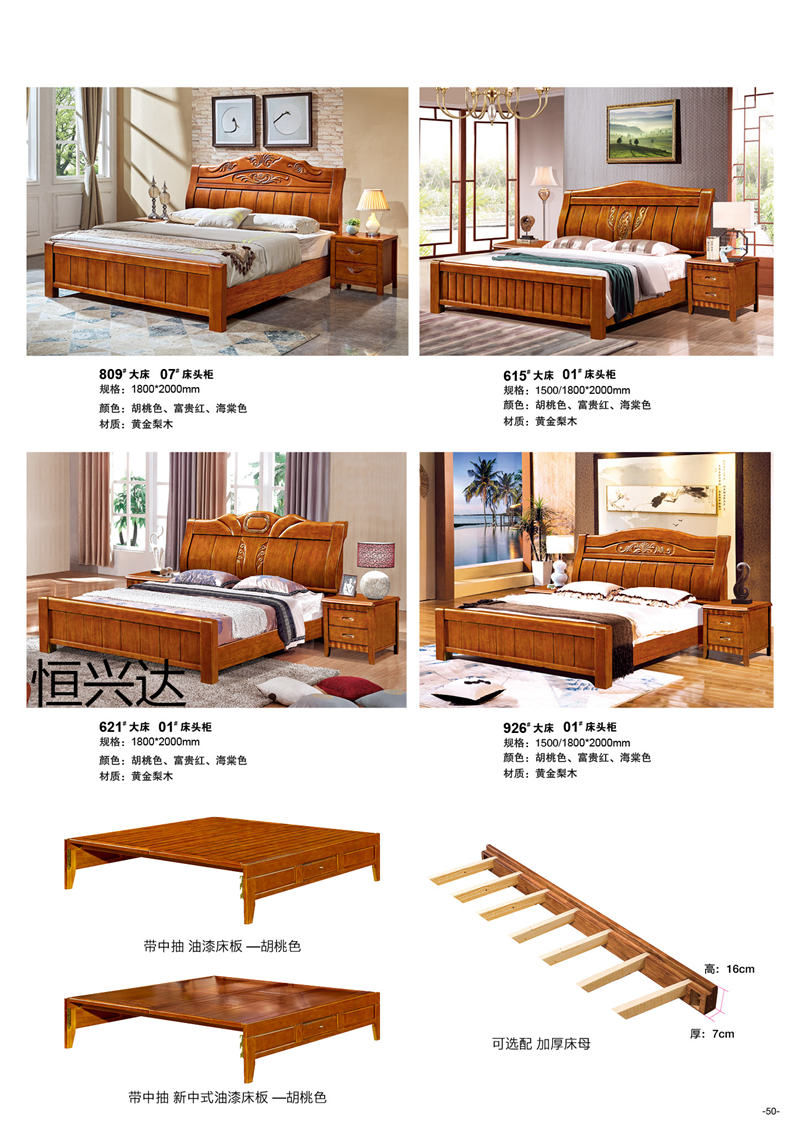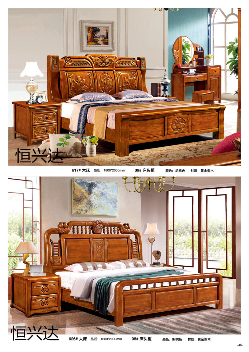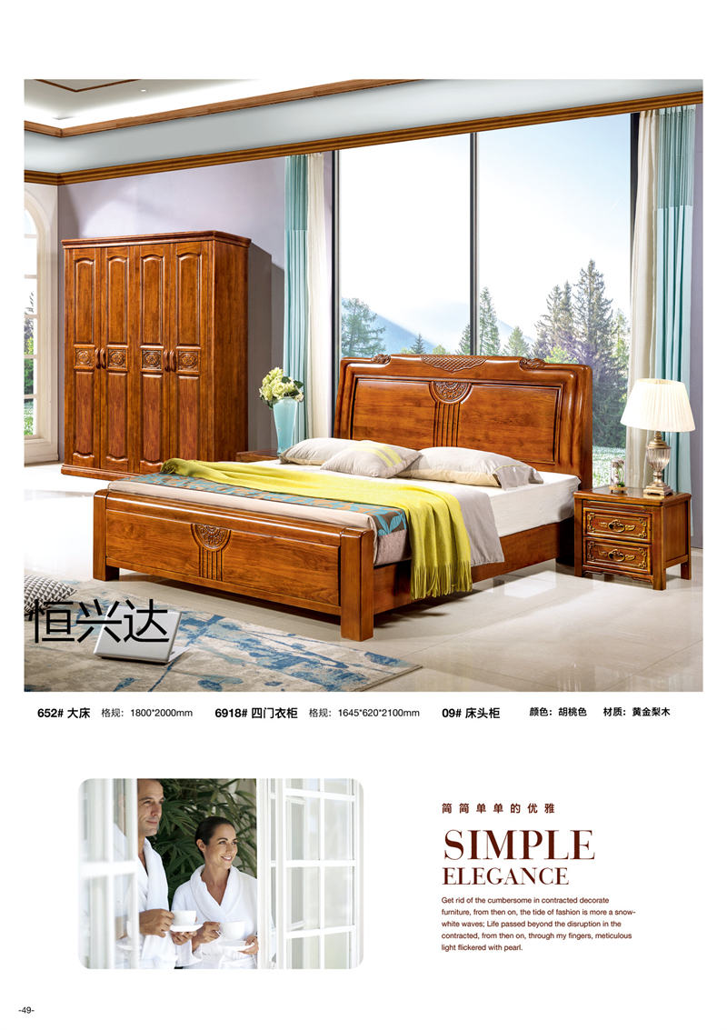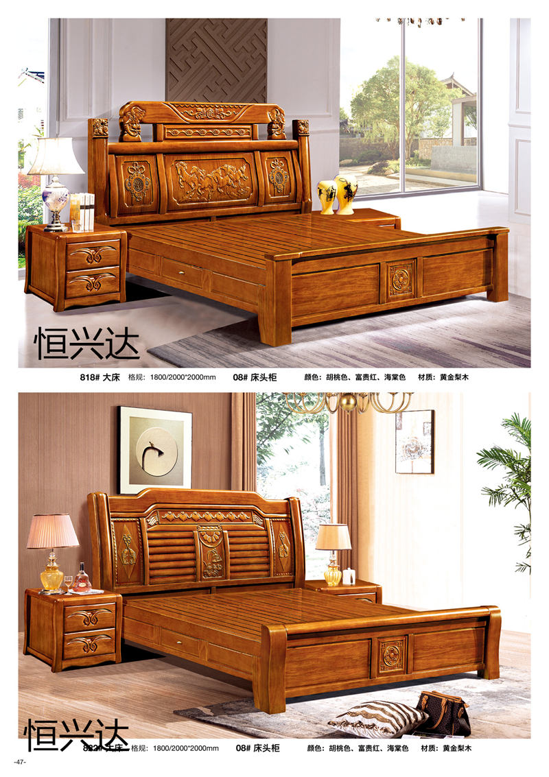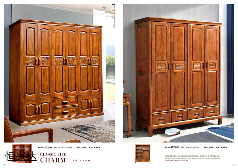 江西來達億家具有限公司旗下“恒興達”品牌選材為黃金梨木木材,黃金梨木木材堅重、抗壓力強、耐腐朽、水濕,供建筑、橋梁、坑柱、木地板、家具等用材。黃金梨木木材顏色白色偏黃,紋理清晰,木質(zhì)堅硬,耐濕防腐,制作的家具淡雅自然,無須加工紋理,可以避免強烈色彩對眼睛的刺激。黃金梨木結(jié)構(gòu)細密,質(zhì)地硬沉,不易變形,材色悅目,切削面光滑具有微香,色澤微黃,節(jié)疤少,耐濕抗腐。在南方諸省,多為黃金梨木制造,因其材質(zhì)堅硬,經(jīng)久耐用,百年不變。現(xiàn)代出口家具也多用黃金梨木制造,經(jīng)檢測,在零下40度至高溫60度環(huán)境考驗下,不會變形、開裂。