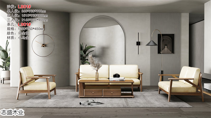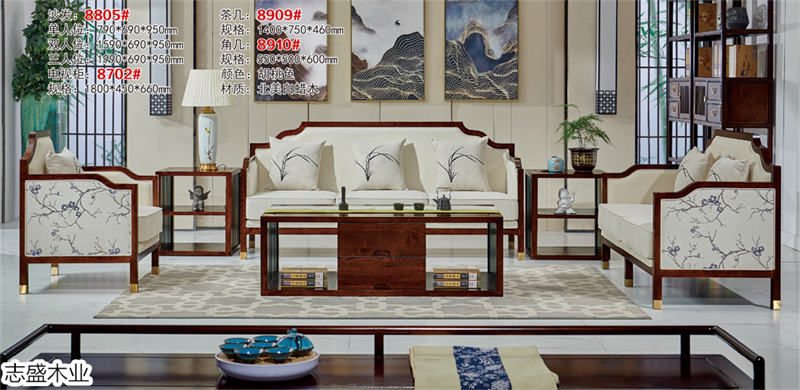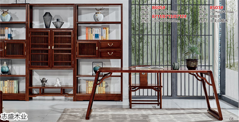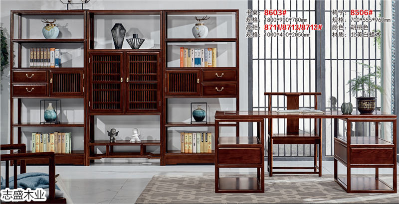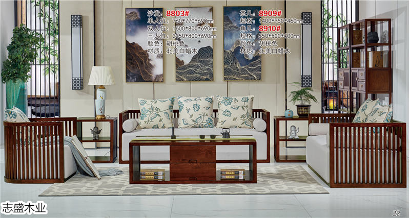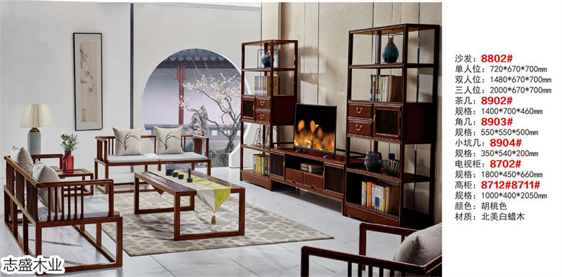 志盛木業白蠟木新中式家具、小烏金現代簡約家具產品: