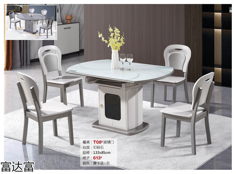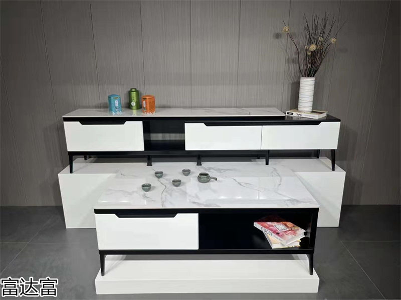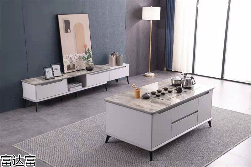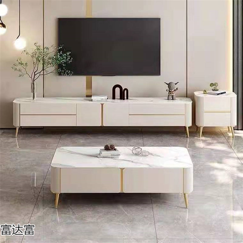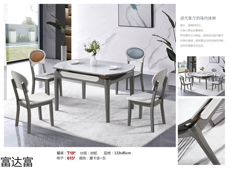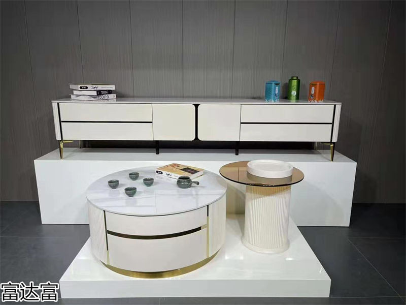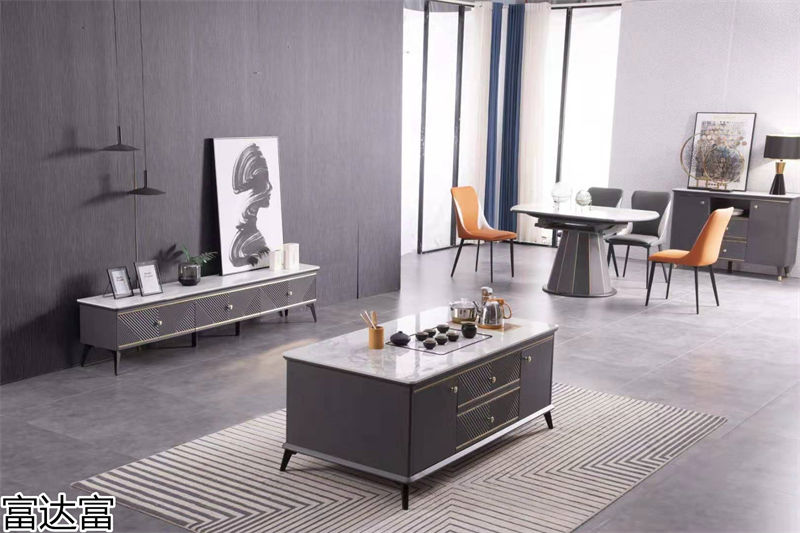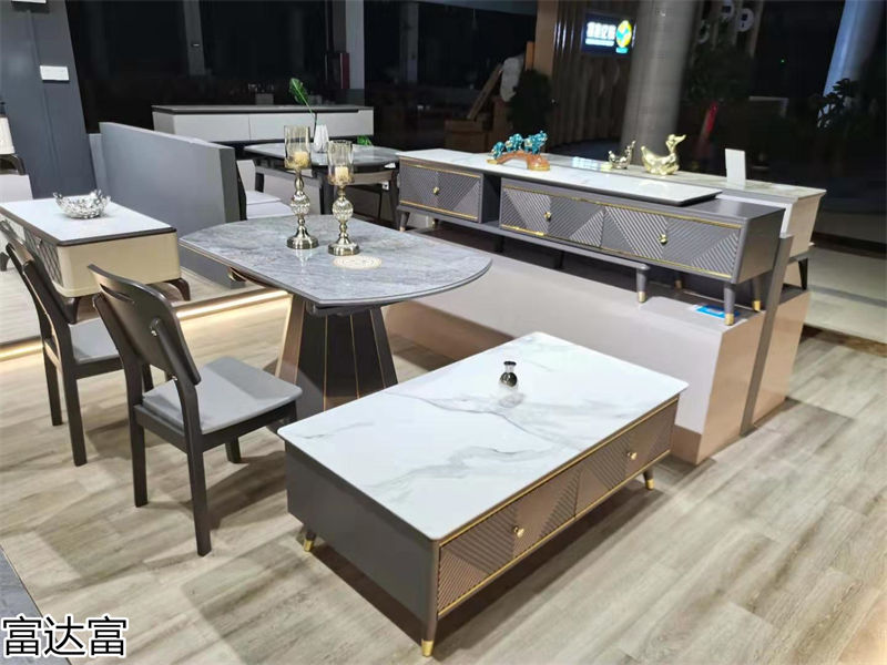 現代時尚輕奢風格兩廳家具,南康現代白油輕奢歐式餐桌椅,江西電視柜、茶幾品牌招商,巖板、水晶石、金剛石餐桌加盟,富達富家具生產廠家