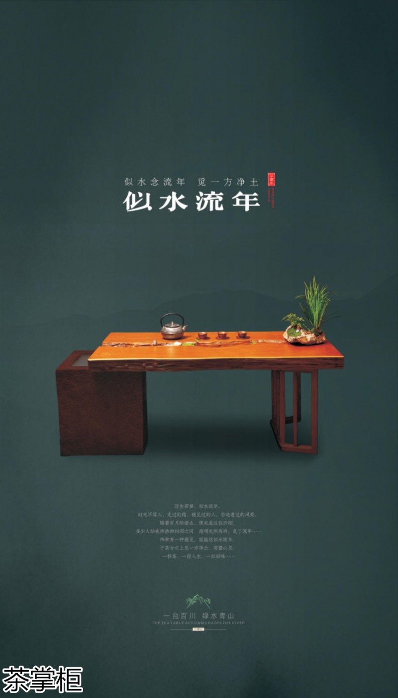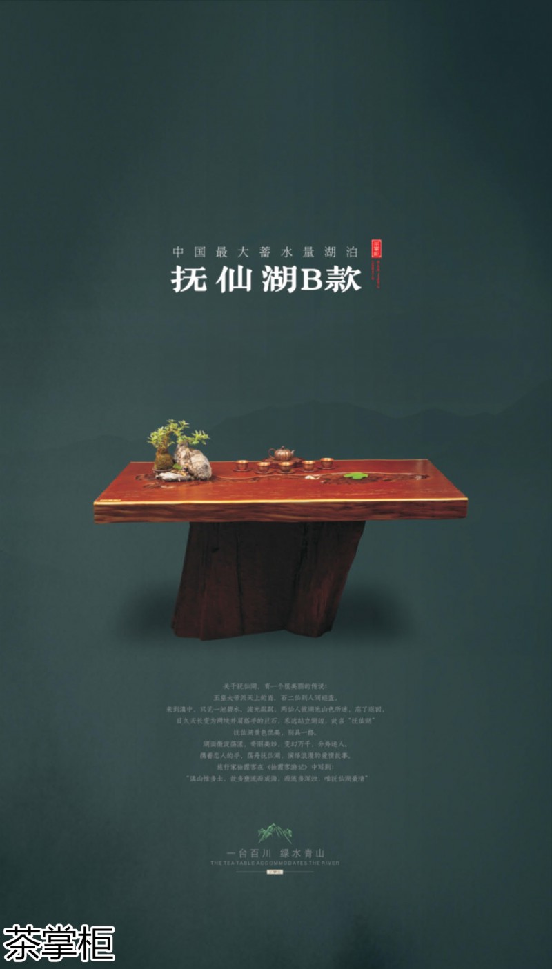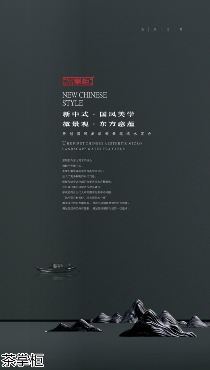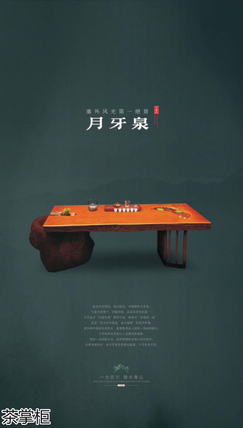 茶掌柜是鄭州唐人文化傳播有限公司旗下的茶空間品牌,公司以“綠水青山就是金山銀山”為創(chuàng)始指導(dǎo)思想,采用高分子碳纖維復(fù)合材料取代傳統(tǒng)的不可再生的木材,利用先進(jìn)的航空測繪技術(shù),萃取大美河流中經(jīng)典的河段,匠心雕琢,一次成型,完美呈現(xiàn)古樹名木的自然紋理,每一款都經(jīng)過工藝美術(shù)大師精心設(shè)計(jì)與雕琢,再由造景師精心布置出千姿百態(tài)、栩栩如生的獨(dú)特自然景觀,真實(shí)還原了旖旎的風(fēng)光,醉人的美景,蜿蜒綿亙、云霧繚繞、流水潺潺、搖曳生姿、如詩如畫...一步一景一畫卷,移步換景畫中游...