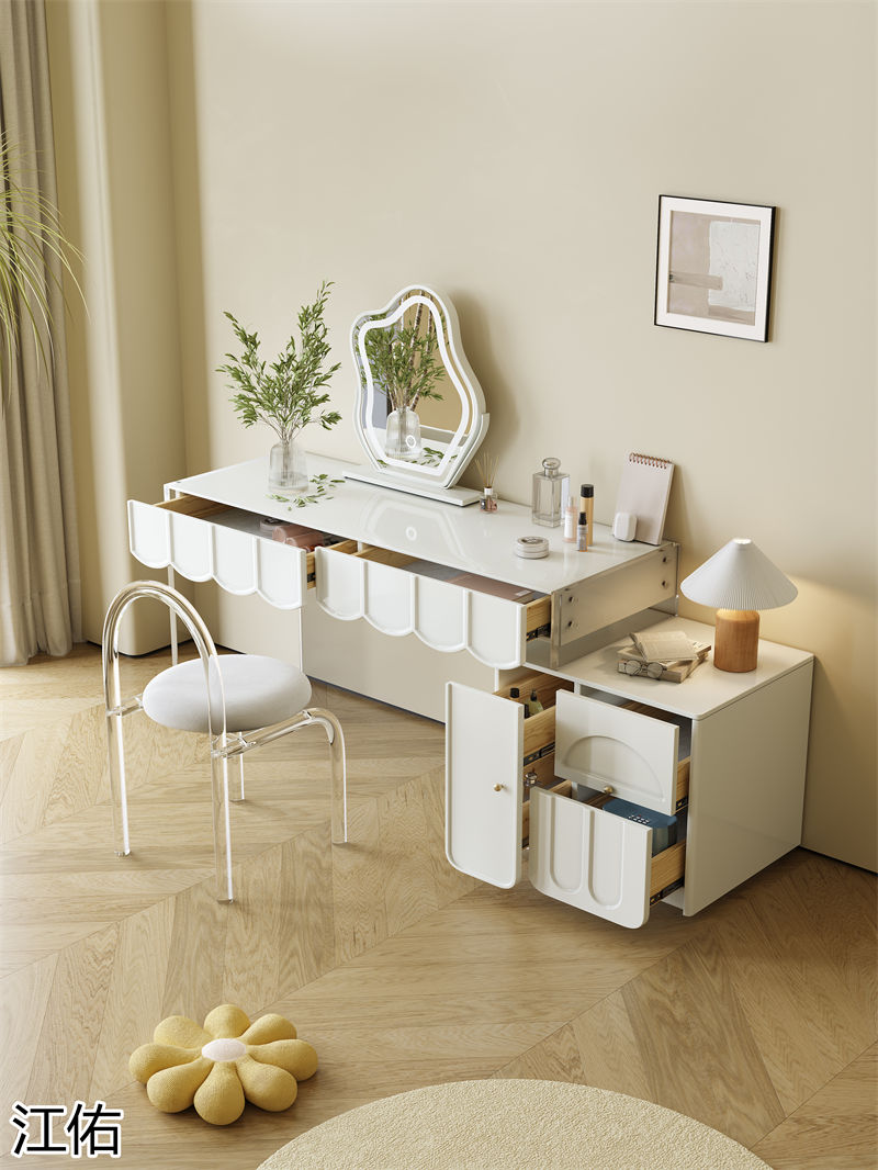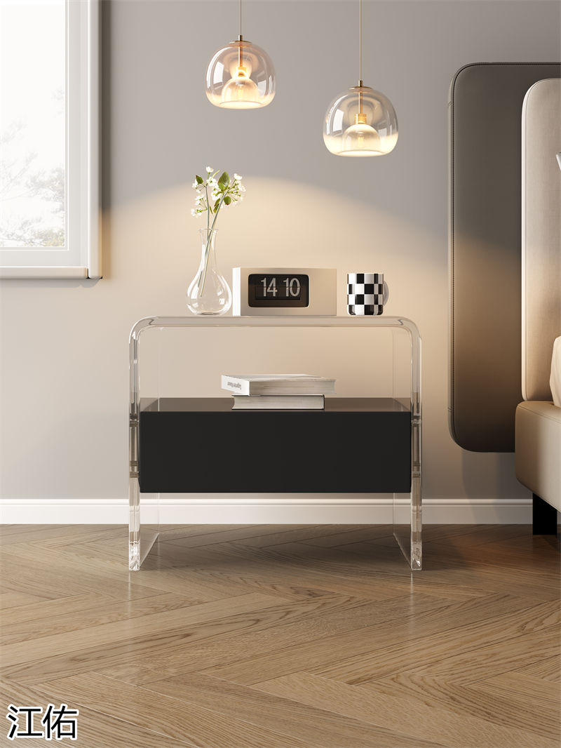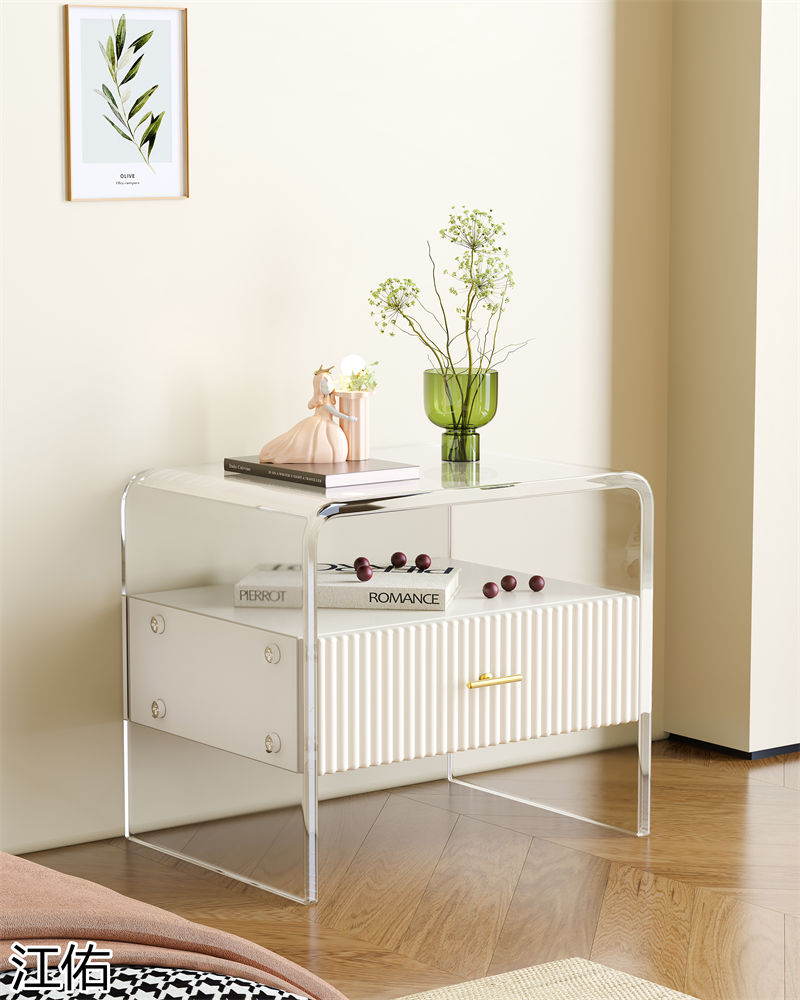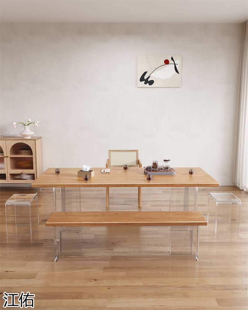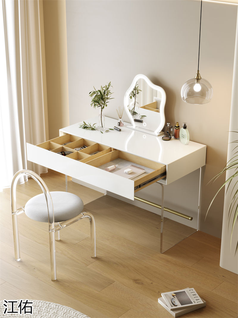 網(wǎng)紅設(shè)計師家具,南康亞克力家具,透明懸浮現(xiàn)代創(chuàng)意家具,奶油風亞克力巖板茶幾、椅子、妝臺、床頭柜、超晶石餐桌,江西江佑家具生產(chǎn)廠家