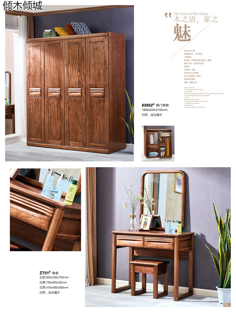 傾木傾城金絲檀木套房家具產品:
