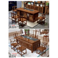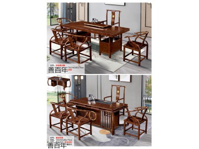 古典新中式實木茶臺,南康沙比利、金花梨木、格木、南榆木、桃花芯木茶臺,江西奧坎、南美胡桃木、花旗木大板,善百年茶空間家具生產廠家