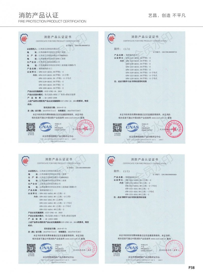 公司長期致力于鋼質門系列產品的自主研發與技術創新,專業生產鋼質隔熱防火門、鋼質防火進戶門、鋼質進戶門等系列產品,已通過ISO9001:2015質量管理體系認證,并嚴格按照該國際標準運行管理,產品無論在外觀設計、制造工藝及品質保障方面都形成了自己獨特的風格,具備了行業相當高的水準。具備了生產各種鋼質隔熱防火門窗的生產資質和生產能力,年生產各類防火門窗可達50萬樘。