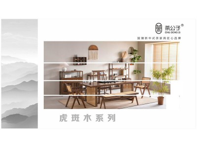 國潮新中式茶家具,南康虎斑木茶空間家具,新中式風格實木茶臺,江西虎斑木茶桌、大板桌、椅凳、博古架、茶水柜,茶公子家具品牌生產廠家