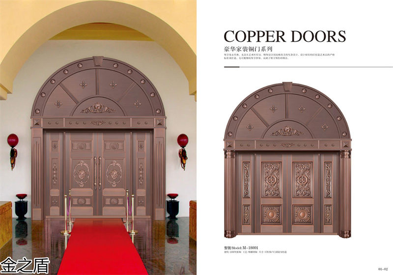 我們工作人員憑借對銅門的獨特理解及多年的制作經驗、設計新穎、獨特造型、做工精細、豪華尊貴、注重環保,其推出的系列產品具藝術美感、品質豪華,深受廣大客戶的信賴,成為同行業的知名品牌。