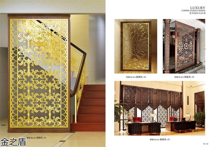 贛州金之盾金屬制品有限公司是一家集 、開發、生產、銷售和服務于一體的現代化企業。專業生產銅門、銅窗、銅扶手、銅吊頂、銅屏風等各種系列產品。我們的產品特點是在原料選購、工藝設計、制造流程、表面處理上獨具特色、揚長避短、科學運用AUTO-CAD技術和專業的生產:自始自終以科技為依托,以市場為導向大膽創新,全身致力于提高銅裝飾水平,以美化居室和安全為己任,以跨越平凡創新無限為經營理念。