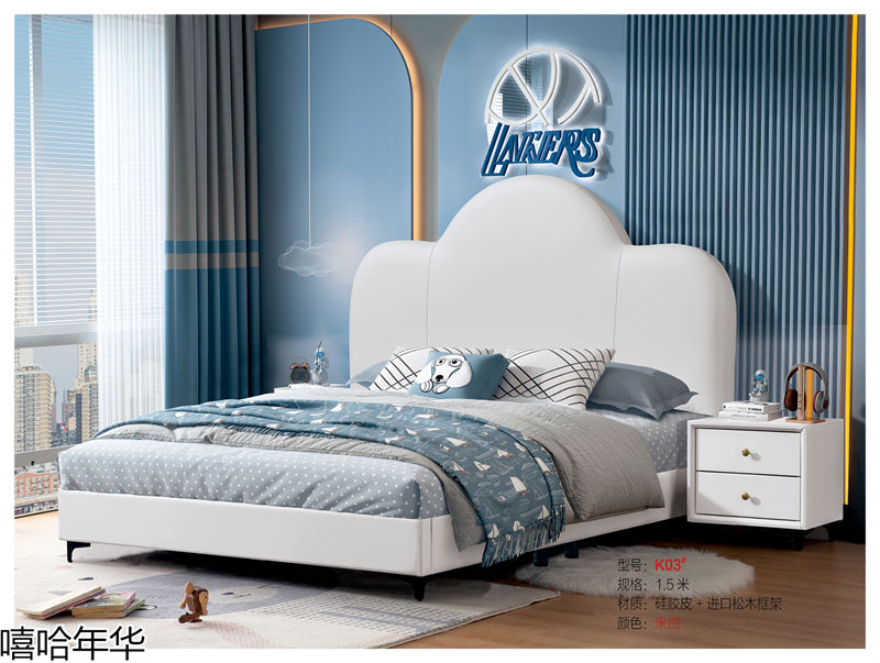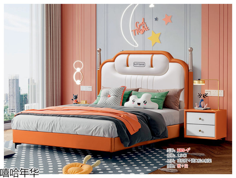嘻哈年華青少年兒童實木家具產品材質選用進口金絲檀木(木蠟油工藝)、金絲胡桃木和橡膠木等天然實木制作而成,不僅堅固耐用還環保健康;嘻哈年華青少年兒童高端軟體色彩寢具系列產品款式顏色豐富多樣,選用無溶劑+橡木框架水性漆、超纖皮/科技絨+進口松木框架,專用靜音排骨架床板,采用新西蘭進口松木,每一塊床板直接跟床邊固定連接,確保結實、耐用、靜音。拒絕平庸,提升檔次,告別異響,靜享舒適。
