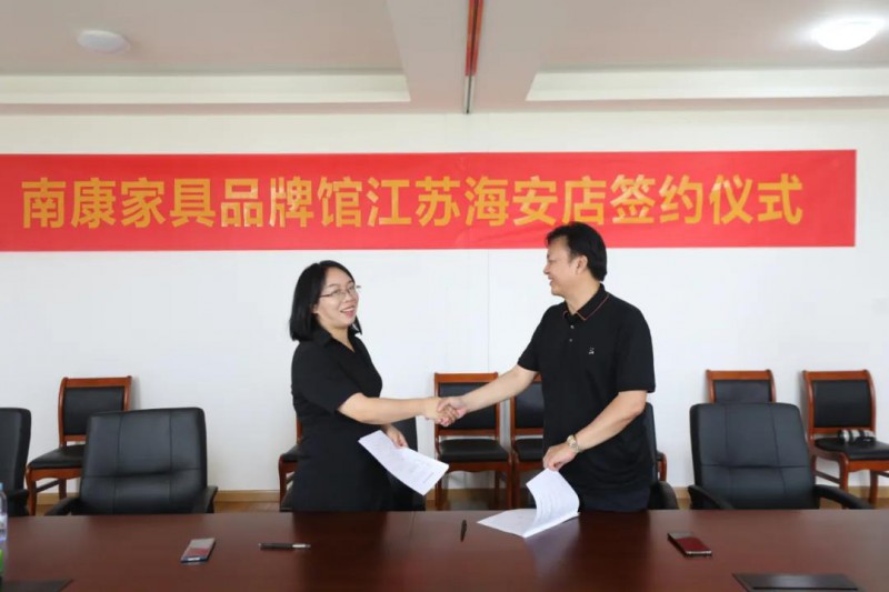 7月14日,南康家具“百城千店”成功簽約中國東部家具產業基地江蘇海安賽林格博覽中心。曼居家具銷售有限公司董事長趙虎勇,曼居家具銷售有限公司經理吳奇等領導蒞臨南康,區家具產業促進局副局長沈春,區家具協會百城千店項目負責人曹畢文熱情接待并開啟簽約儀式。