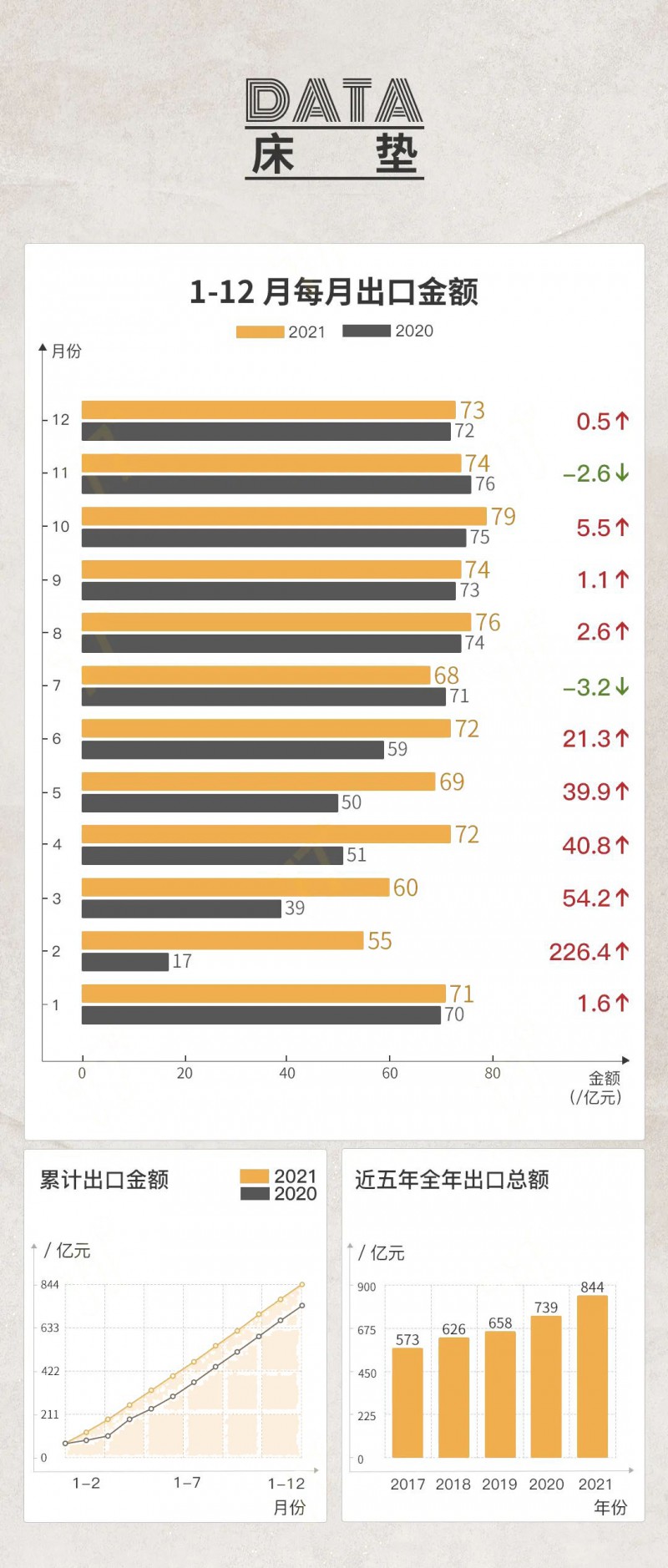 核心提示:1月19日,2021中國家居建材進出口大數據發布,家具、床墊、燈具、建筑裝飾陶瓷、板材等產品進出口總額都較2020年有所提升。