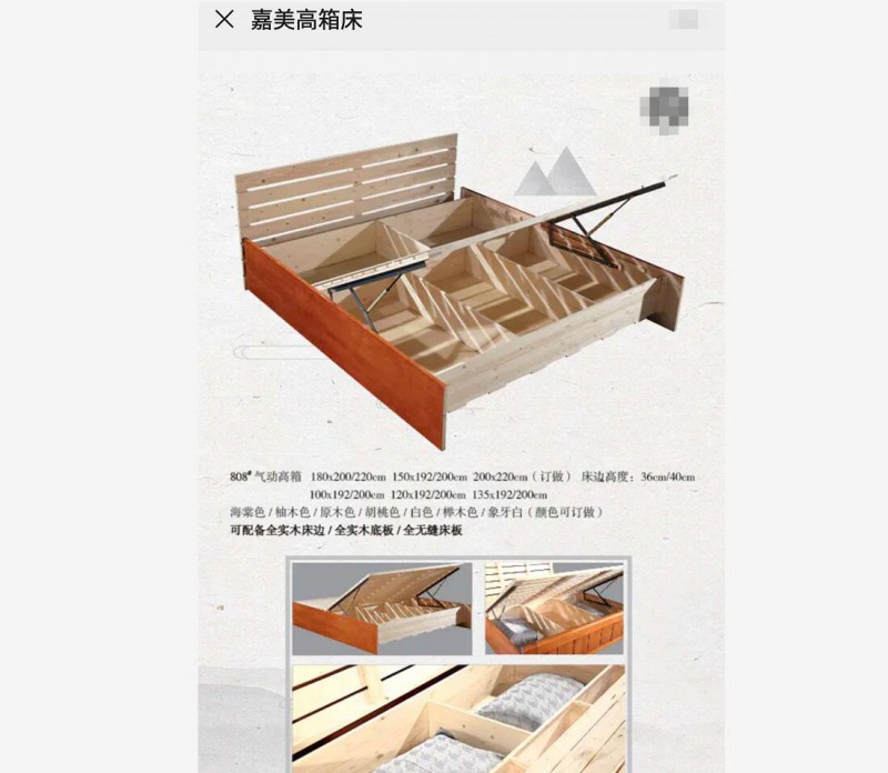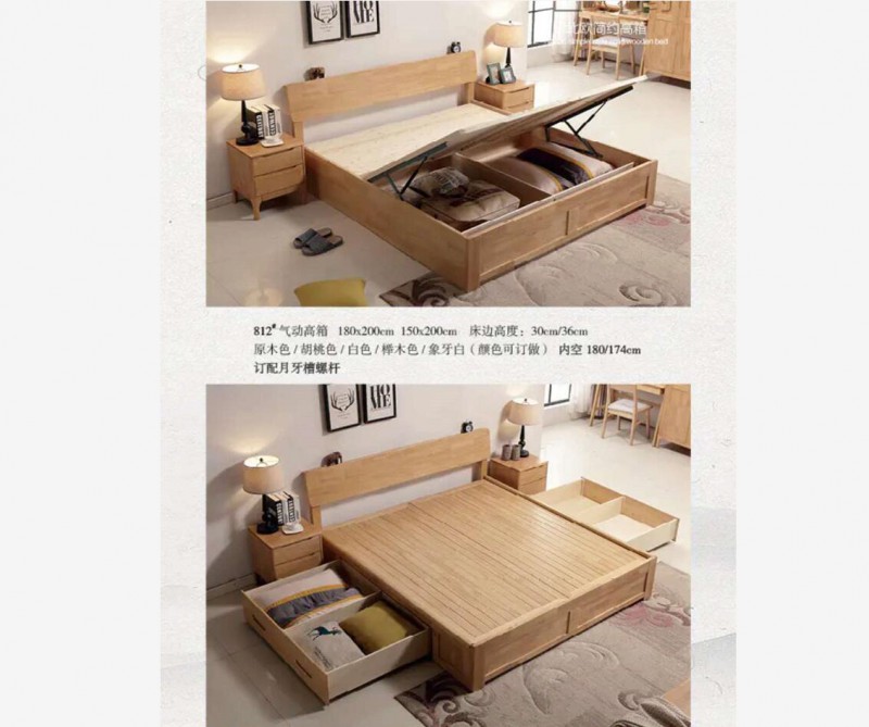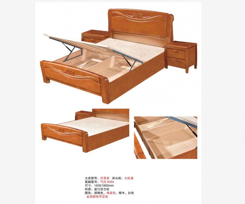 3、氣壓高箱床,指的是是規(guī)格為1.5*1.9米(寬*長)加床頭2.05米的床,其帶有液壓,帶有儲物箱等。氣壓高箱床采用標(biāo)準(zhǔn)環(huán)保顆粒成型板,精加工細(xì)制作,絕對環(huán)保,沒有異味。