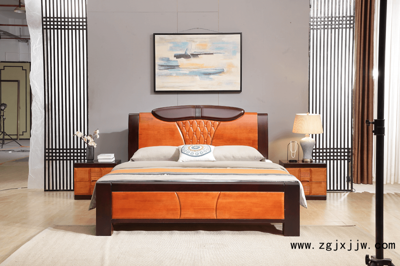 宣輝家具實木床6001#桔+黑胡桃色