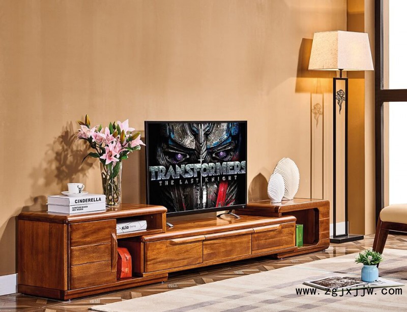 誰最美新德式金絲檀木伸縮電視柜8319#