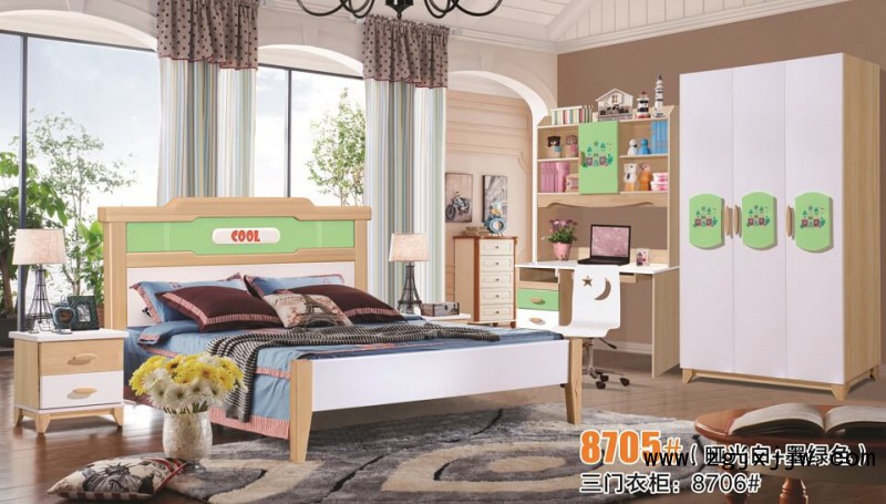 富利雅青少年北歐實木套房8705#(啞光白+墨綠色)