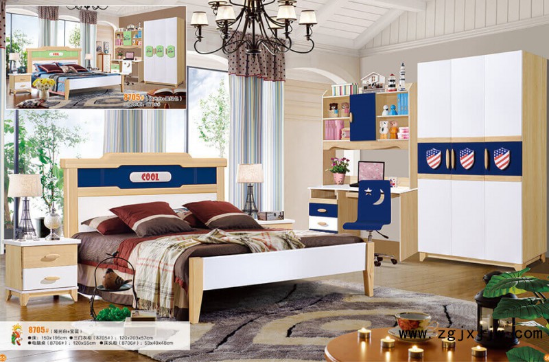 富利雅青少年北歐實木套房8705#(啞光白+寶藍色)