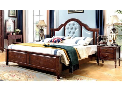木佰創美式家具:胡桃色美式壓紋床025#(油蠟淺藍皮)