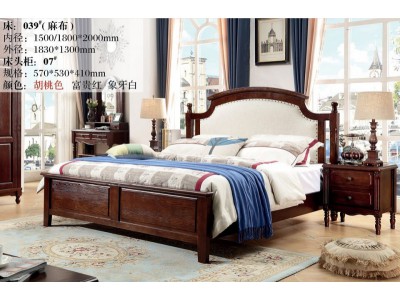 木佰創美式家具:胡桃色美式壓紋床039#(麻布)