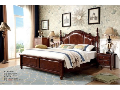 木佰創(chuàng)美式家具:胡桃色美式壓紋床063#(棕皮)