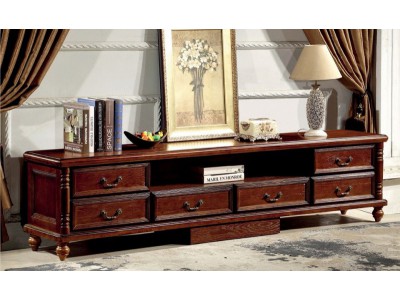 木佰創美式家具:胡桃色美式壓紋電視柜A658#