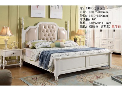 木佰創(chuàng)美式家具:象牙白美式壓紋床038#(仿真皮)