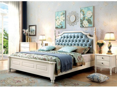 木佰創(chuàng)美式家具:象牙白美式壓紋床061#(淺藍拉扣)