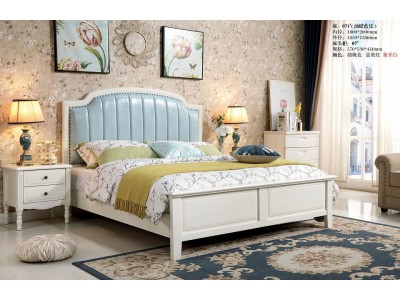 木佰創美式家具:象牙白美式壓紋床071#(油蠟藍皮)
