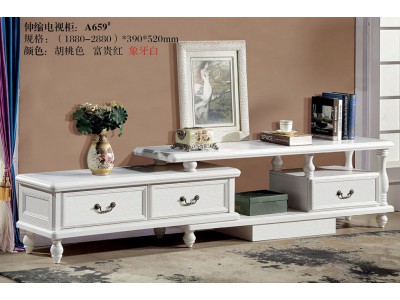 木佰創美式家具:象牙白美式壓紋伸縮電視柜A659#