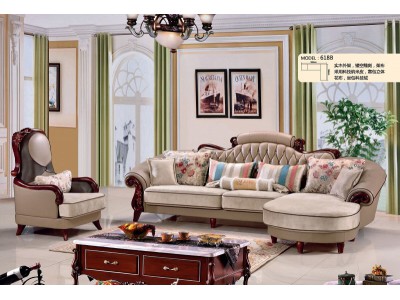 實(shí)木外架,鏤空雕刻,架布采用科技納米皮,靠包立體花布,坐包科技絨