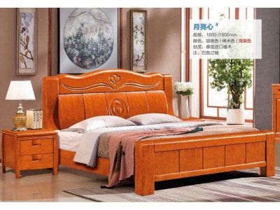 俊豐家具:橡木床月亮心#(海棠色)