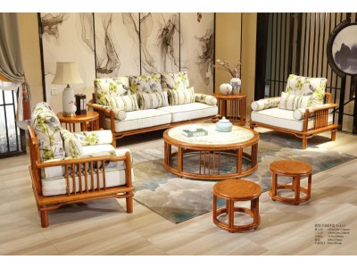 詩意東方新中式紅木:花好月圓沙發1+1+3