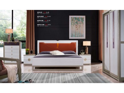 采木園致青春現代輕奢實木系列9812#床(A色 白+橘)