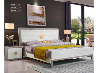 采木園致青春現代輕奢實木系列9810#床(A色 白+灰)