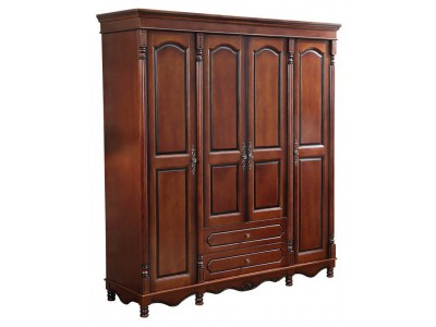 華夏國康美式復古胡桃色系列四門衣柜820#