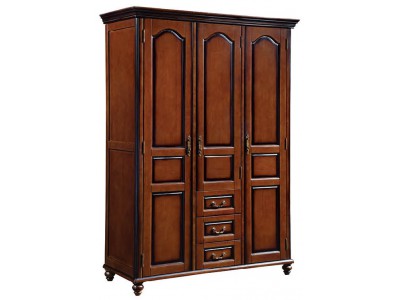 華夏國康美式復(fù)古胡桃色系列三門衣柜819#
