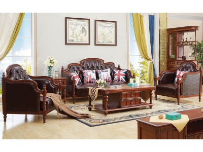 華夏國康美式復(fù)古胡桃色系列1+1+3沙發(fā)GK015#