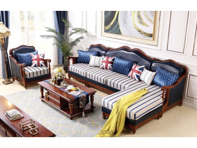 華夏國(guó)康美式復(fù)古胡桃色系列轉(zhuǎn)角沙發(fā)GK019# |
