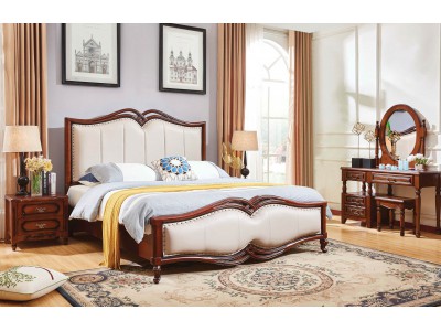 華夏國康美式復古胡桃色系列大床622#
