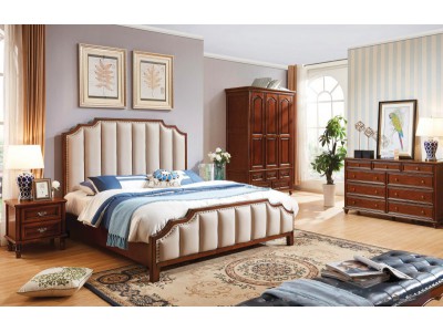 華夏國康美式復古胡桃色系列大床203#