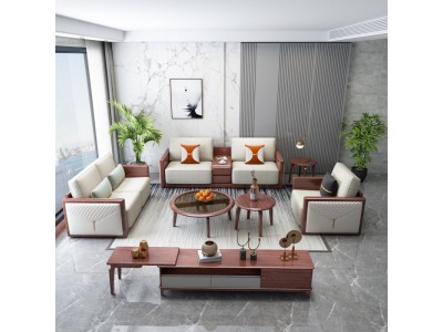阿姆雷特現代輕奢胡桃木1+2+3沙發A808