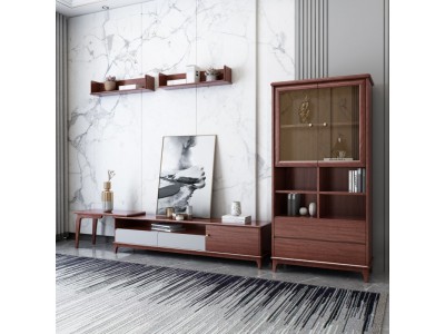 阿姆雷特現代輕奢胡桃木伸縮電視柜A809、高柜A807