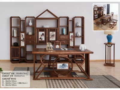 菲百年新中式禪意北美黑胡桃木CM302#茶桌、CM302#茶桌、CM319#博古架