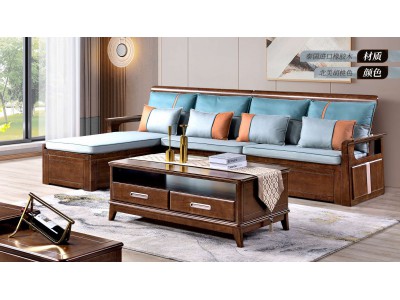 長樂家具北美胡桃色橡膠木8822#沙發