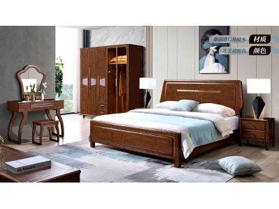 長樂家具北美胡桃色橡膠木2132#大床