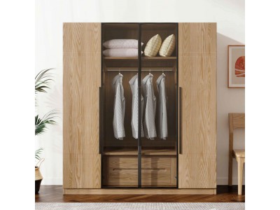 朗朝現代極簡白蠟木家具:L2684#四門開門衣柜(原木色)