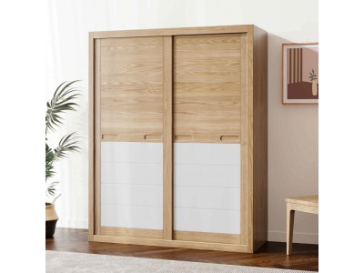 朗朝現代極簡白蠟木家具:L2664#趟門衣柜(原木色)